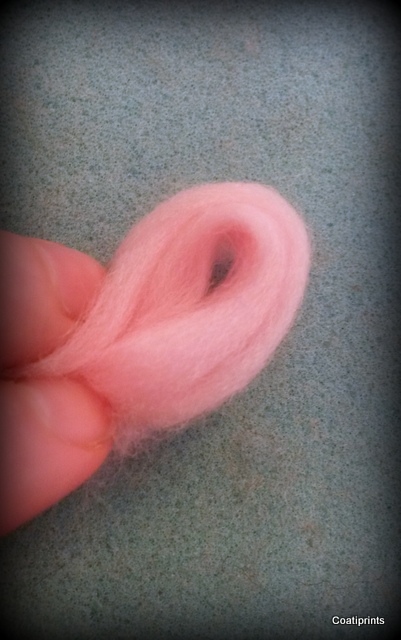 To begin then, you will need to take 5 small pieces of wool of roughly the same size (one for each petal). I will show you how to make each petal. Some of this is very similar to how I begin to make bunny ears (see here).