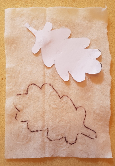 It is best to use a pen to trace round the leaf shapes rather than a pencil to make sure the lines show up clearly. Don’t worry about the wet wipes still being slightly damp as they will soon dry.