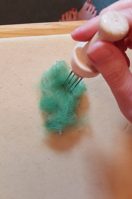 If you want to felt flat pieces quicker, a four needle tool is perfect. Triangle or star needles are great for this.