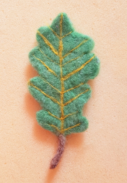 I used brown wool for the protruding stem of the oak leaf.