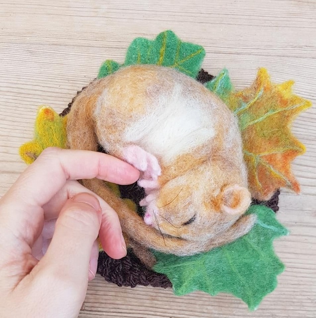 I recently felted some leaves for ‘Hazel’ the sleepy Dormouse and took some photos of the process for you along the way.