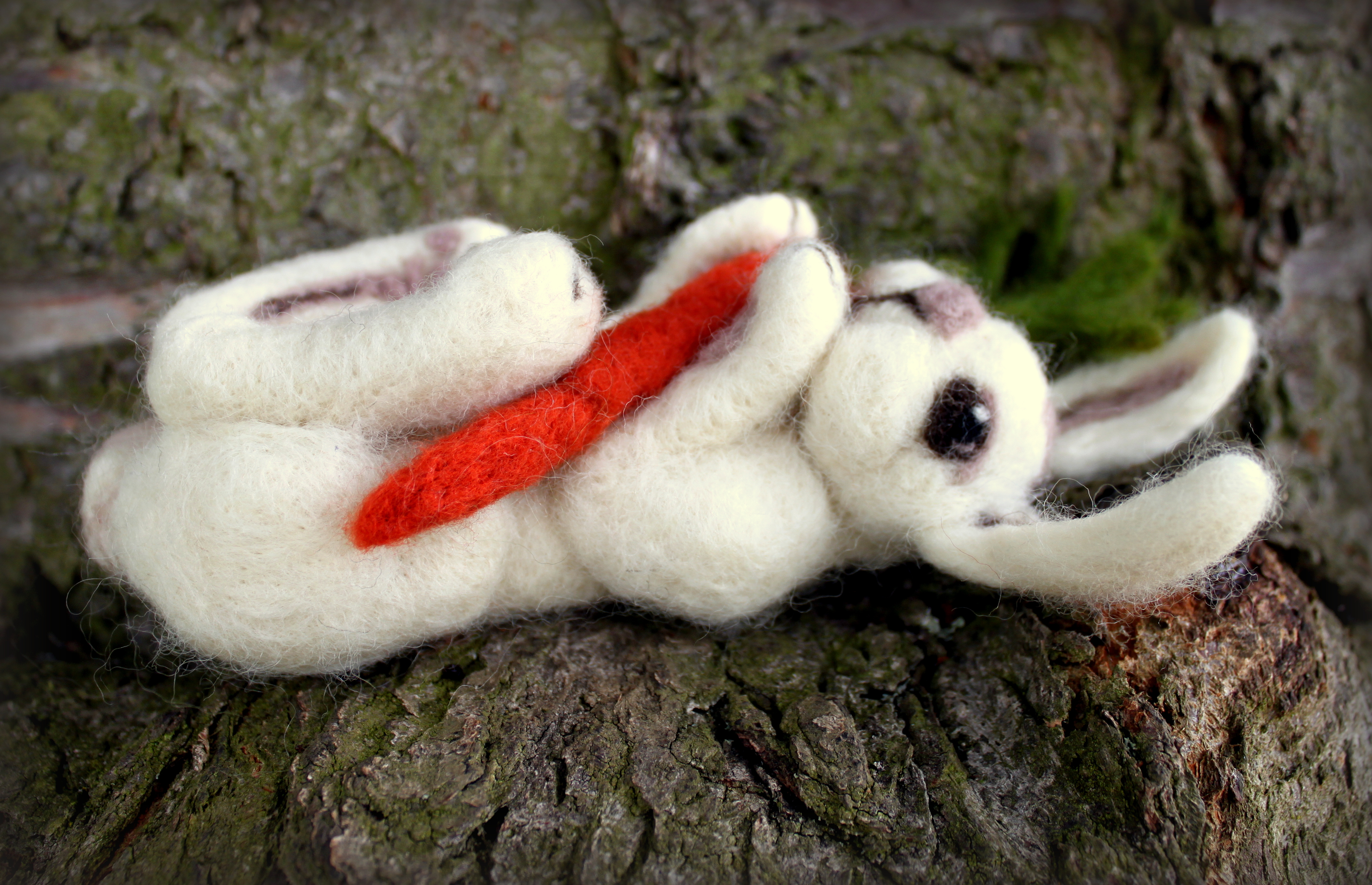 The first time I bought some wool and attempted needle felting I ended up making this little cream bunny from corriedale wool.